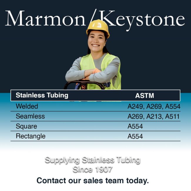 Marmon/Keystone’s stainless tubing inventory provides a wide selection of high-quality stainless steel tubing to serve a variety of industries. Offered in multiple grades, including 304, 316, and 321, our tubing delivers exceptional corrosion resistance, strength, and long-term durability. From fluid handling and heat exchangers to structural applications, Marmon/Keystone stainless tubing is engineered for precision, reliability,…
